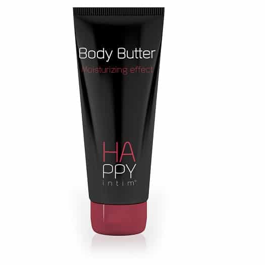 HAPPY Intim® Body Butter is een prettig geurende bodylotion met een zijdezachte structuur die de huid hydrateert en de bloedcirculatie bevordert. De ingrediënten beschermen tegen vrije radicaalschade en bevorderen wondgenezing. Het product is bovendien rijk aan vitamine E, wat relevant is voor de preventie van door uv-straling op gang gebrachte huidkankerontwikkeling en wat een antioxidatieve werking heeft.